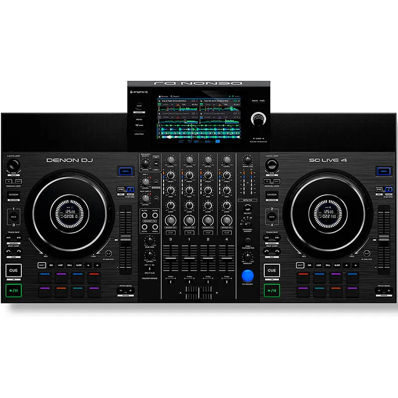 El Denon DJ SC LIVE 4 es un controlador DJ independiente de 4 decks con pantalla táctil de 7 pulgadas, altavoces incorporados y conectividad Wi-Fi. Este controlador todo en uno estilo club, proporciona a los DJs la máxima libertad creativa y ofrece la primera integración hardware de DJ con Amazon Music Unlimited.